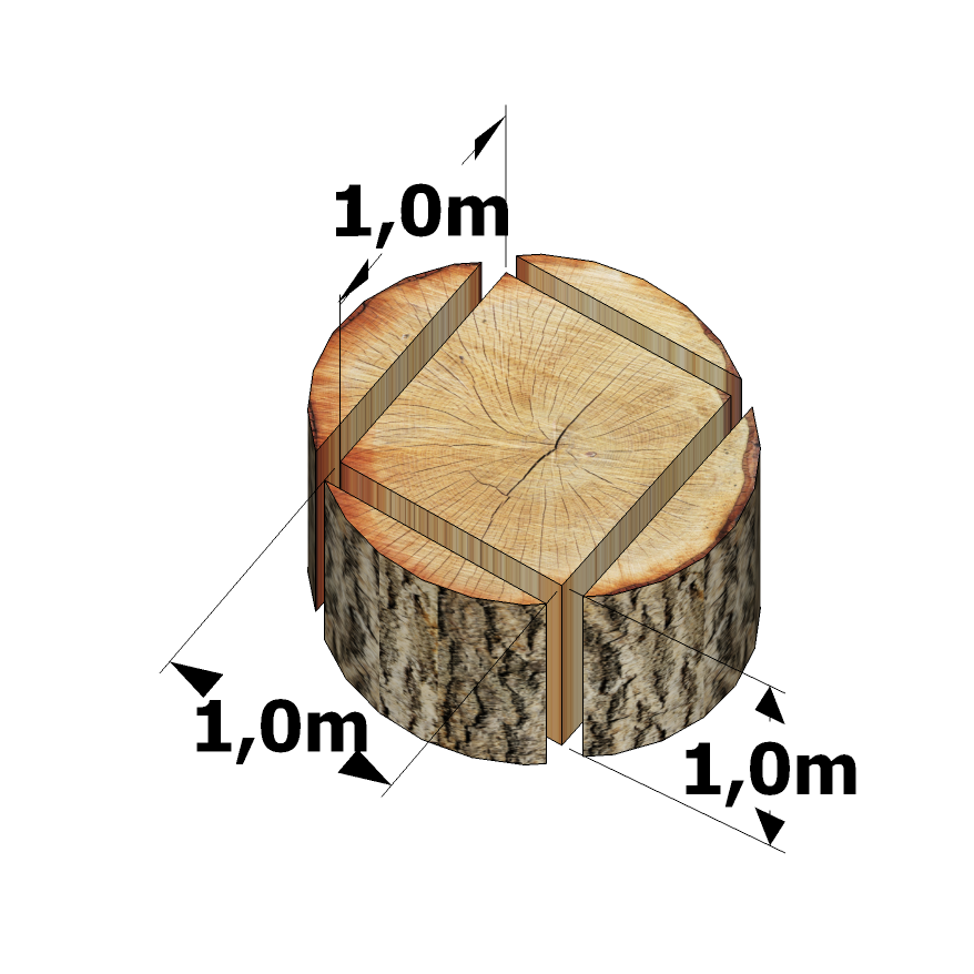 In Festmeter (fm) werden in der Regel geschlagene, komplette Baumstämme abgerechnet. Die Baumstämme werden hierbei genau vermessen (Durchmesser x Länge). Ein Festmeter entspricht 1x1x1 Meter massivem Holz ohne Lufträume.